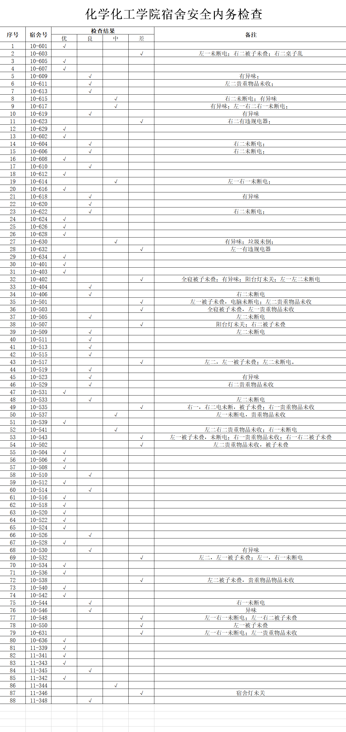 化学化工学院2020-2021学年第一学期 第17周宿舍内务检查 2020级