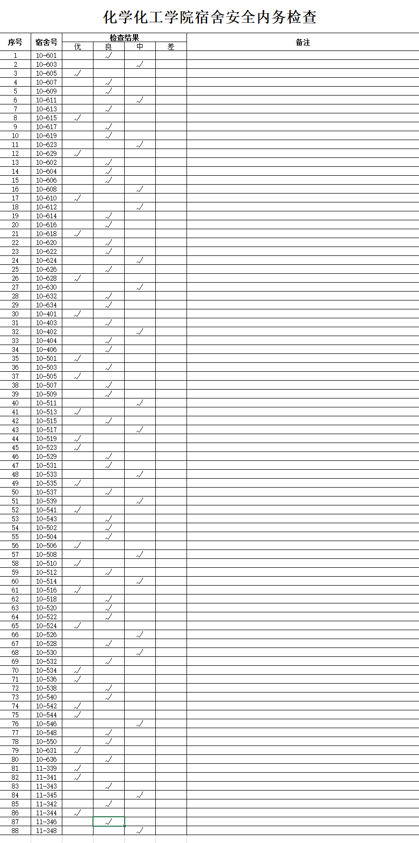 化学化工学院2021-2022学年第二学期 第1周宿舍内务检查 2020级